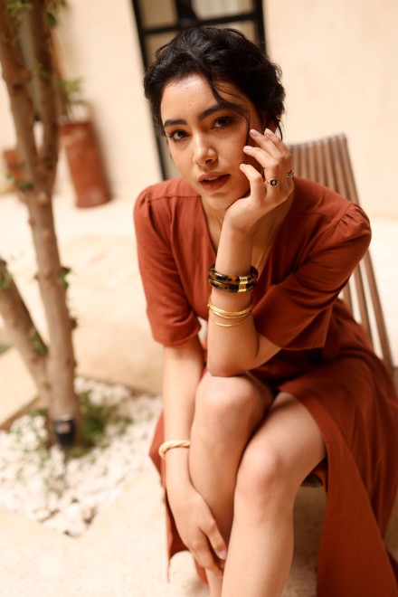 Khadia mesure 1,78m et porte la taille S